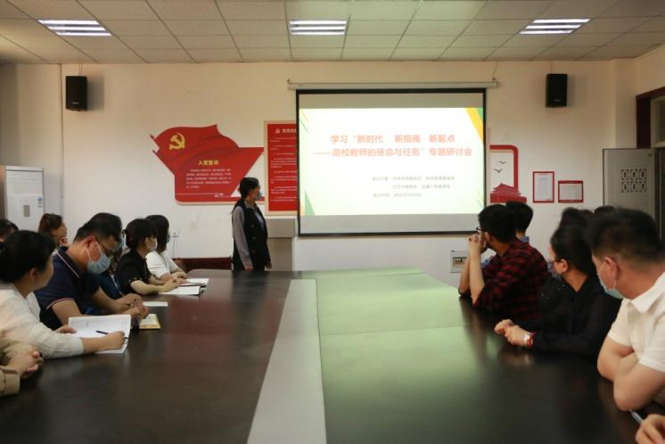 其次,与会老师分别发表了学习心得。老师们认为在新时代下,国家和社会对高校教育提出了更高的要求,我们要将此作为新的起点,改变陈旧的教育方式,开展多元化教育,将多种教学方式引入课堂;世界多元化发展的大背景下,要求我们的员工要全方面的发展自身,因此也就对教师提出了更高的教学要求,我们应该紧跟国家政策,学紧跟新形势。在平时工作中,更新观念,终身学习,把个人理想、本职工作与祖国发展、人民幸福紧密联系在一起,为中华民族的伟大复兴奉献智慧的力量。