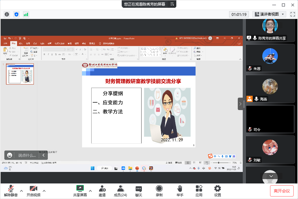 为了加强对新教师的培养,提高教师的业务素质,使青年教师快速成长,财务管理教研室于11月29日下午14:00-16:00开展了教学技能交流分享活动。