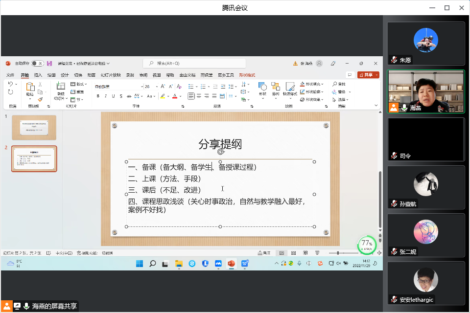 本次活动中,教研室主任张海燕副教授等9位高层次教师围绕教学技能、科学研究、课堂建设、师生互动、师德师风等方面分享了个人从教的心得体会。他们亲切大方的教态、先进的教学理念、娴熟的教学技能、扎实的专业底蕴、独特的教学风格,让在场听课的师生享受了一次丰盛的“课堂营养大餐”。每位老师的分享都彰显了他们独特的教师魅力,也让旁听教师对教学有了更多的思考。