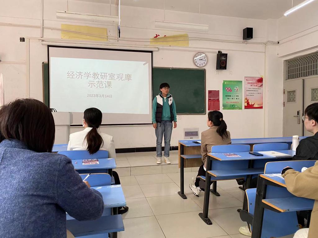 为进一步加强新教师培训,做好督查整改工作,3月14日下午经济学教研室在文华楼3-303教室举行了教学观摩示范课活动。活动由经济学教研室副主任苗娜娜主持,孟腊梅老师做教学展示,教研室全体教师观摩学习。