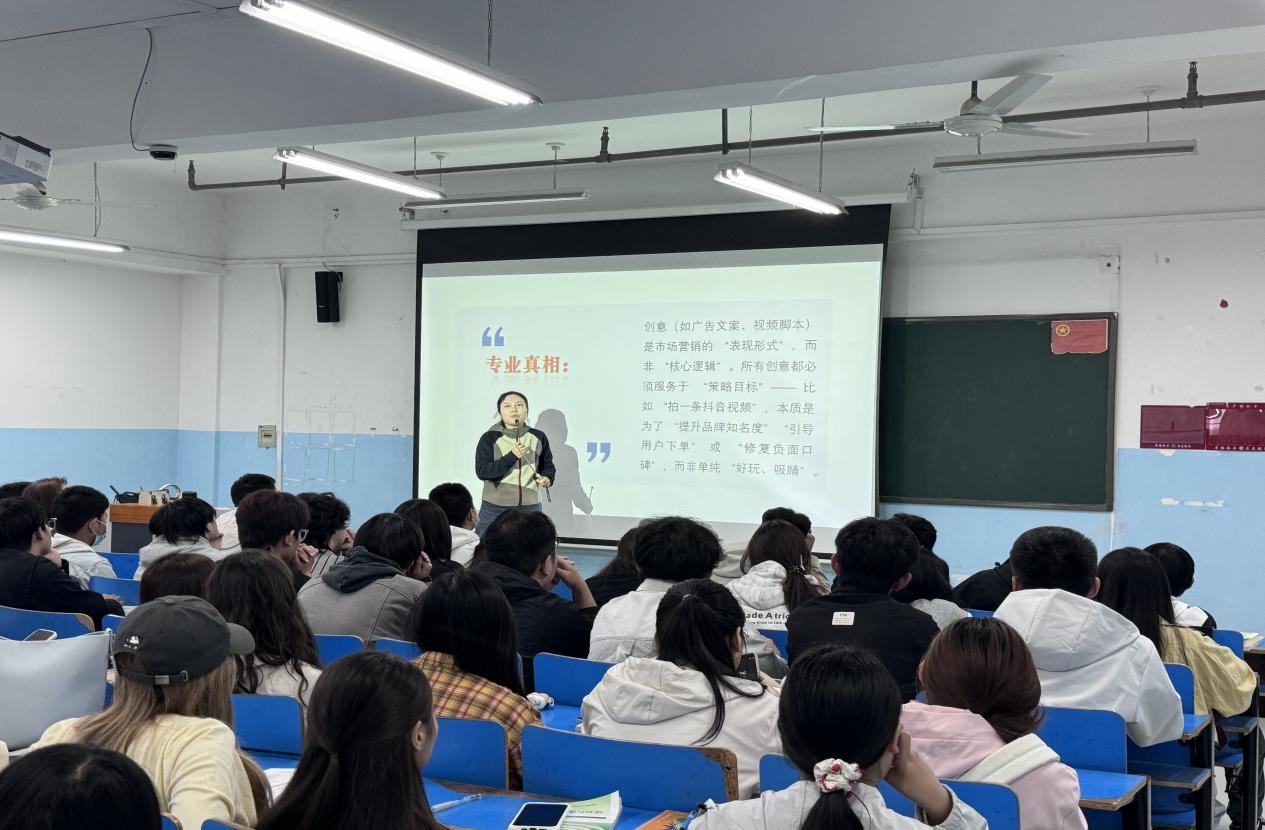随后,李芳芳老师从专业培养目标、课程体系设置、团队力量、实践教学安排、就业方向与发展前景等方面进行了全面介绍。她强调,市场营销专业注重理论与实践的结合,不仅开设了市场营销学、消费者行为学等核心课程,还搭建了丰富的实践平台,如校企合作项目、营销策划大赛、实习实训基地等,旨在帮助员工将理论知识转化为实际操作能力。此外,李老师还结合当前市场营销行业的发展趋势,为新生们分析了未来的就业方向,鼓励新生们根据自己的兴趣与特长,提前做好职业规划,为未来的职业发展打下坚实的基础。