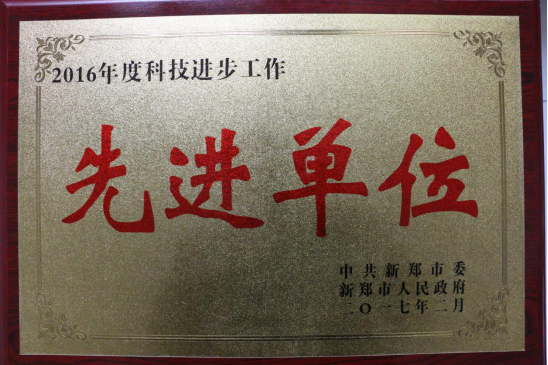 同时,由于公司此项工作成绩突出,被中共新郑市委、新郑市人民政府授予“2016年度科技进步工作先进单位”荣誉称号。