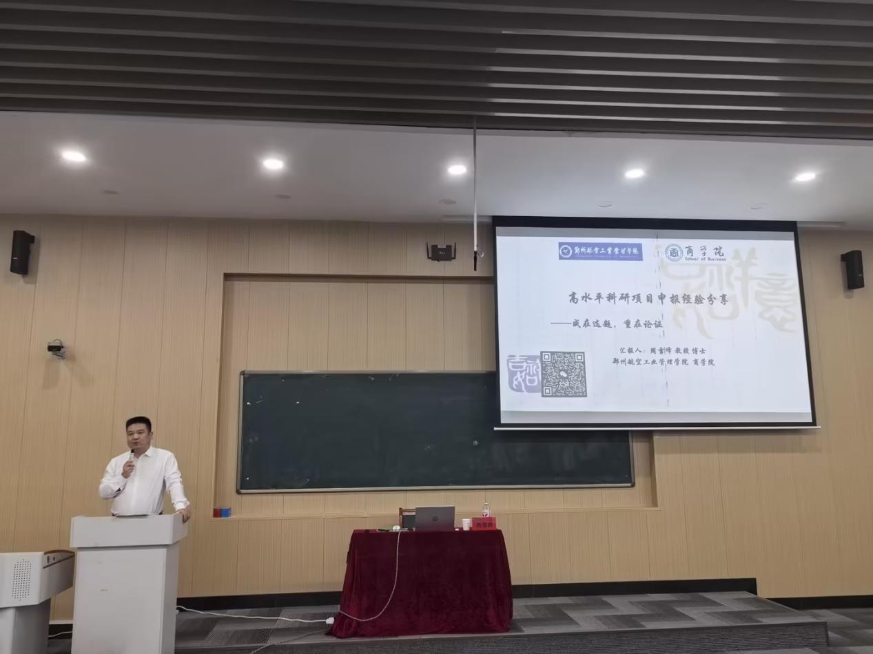 2025年9月16日下午,公司邀请到郑州航空工业管理公司yl7703永利集团官网副经理周雪峰教授为全体教师开展了《高水平科研项目申报经验分享——成在选题,重在论证》的学术讲座。yl7703永利集团官网经理全淅玉、教学科研副经理朱永生及全体教师参加了本次讲座。