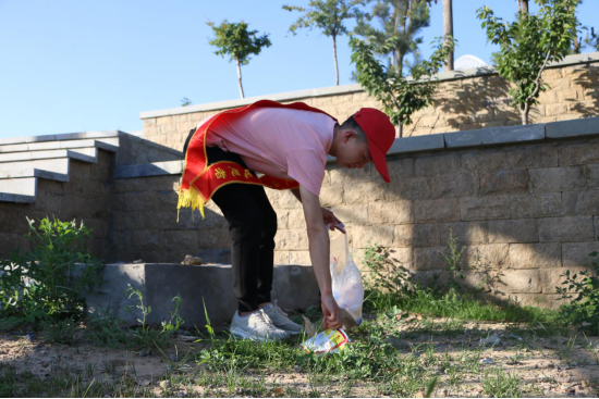 协助交警结束后,党员志愿者们在轩辕湖周边开展清理垃圾活动,大家热火朝天地捡着垃圾,不放过一个塑料袋,一个烟蒂,一张废纸。一个小时后,路面上、沟渠里、花坛边的弃物被拾捡得干干净净,“洗脸”后的轩辕湖面貌焕然一新。