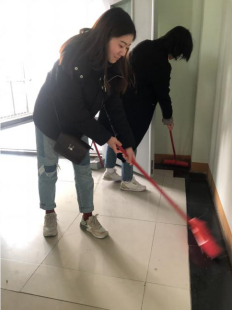 实践活动开始后,学员们迅速参与到了清洁工作中,按照预先分组对公司环境进行了清理。他们认真清扫地面、摆放楼梯间杂物、对宣传栏进行彻底清洁,将自行车摆放整齐等,他们注重每一处细节,认真清扫每一个角落。在学员们共同努力之下,公司的环境得到了很好地维护。