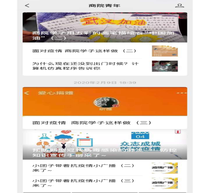 班会上重点介绍了疫情防控期间各行各业支援湖北的典型事迹和感人故事,介绍了公司在疫情防控期间的做法措施,鼓励员工在国家危难时刻,要树立大局观、饱含爱国心,要发扬中华民族的传统美德,一方有难,八方支援,尽己所能,为他人提供帮助。同时,鼓励员工在保证安全的情况下,若有参与当地疫情防控的事迹及时整理上报。在公司官方微信上特别设置了“抗击疫情 商院学子在行动”、“ 抗击疫情 商院教师这样做”、“小团子带着抗疫情小广播来了”“商院学子用五彩的画笔描绘着中国加油”等专题,以师生喜闻乐见的方式进一步深入做好宣传教育工作。