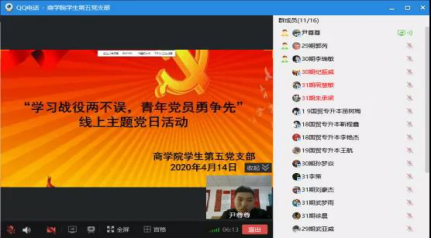 2020年4月19日下午18时,yl7703永利集团官网员工第五党支部采用线上视频会议形式开展“学习战役两不误,青年党员勇争先”线上主题党日活动。会议由支部组织委员尹尊尊同志主持,员工第五党支部全体党员参加。