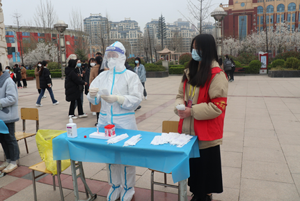 在核酸检测期间,党员志愿者们统一佩戴袖章和工作证,穿红色马甲,引导员工整齐有序排队,并维护核酸检测的现场秩序。他们严肃认真、一丝不苟、有序协调、密切配合,保证了检测一系列工作的规范准确,优质高效。志愿者们用实际行动践行了新时代青年的责任与担当,在抗击疫情的战场上,用青春的力量助力疫情防控,成为抗击疫情志愿者队伍中一道靓丽的风景线。