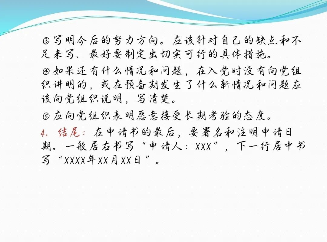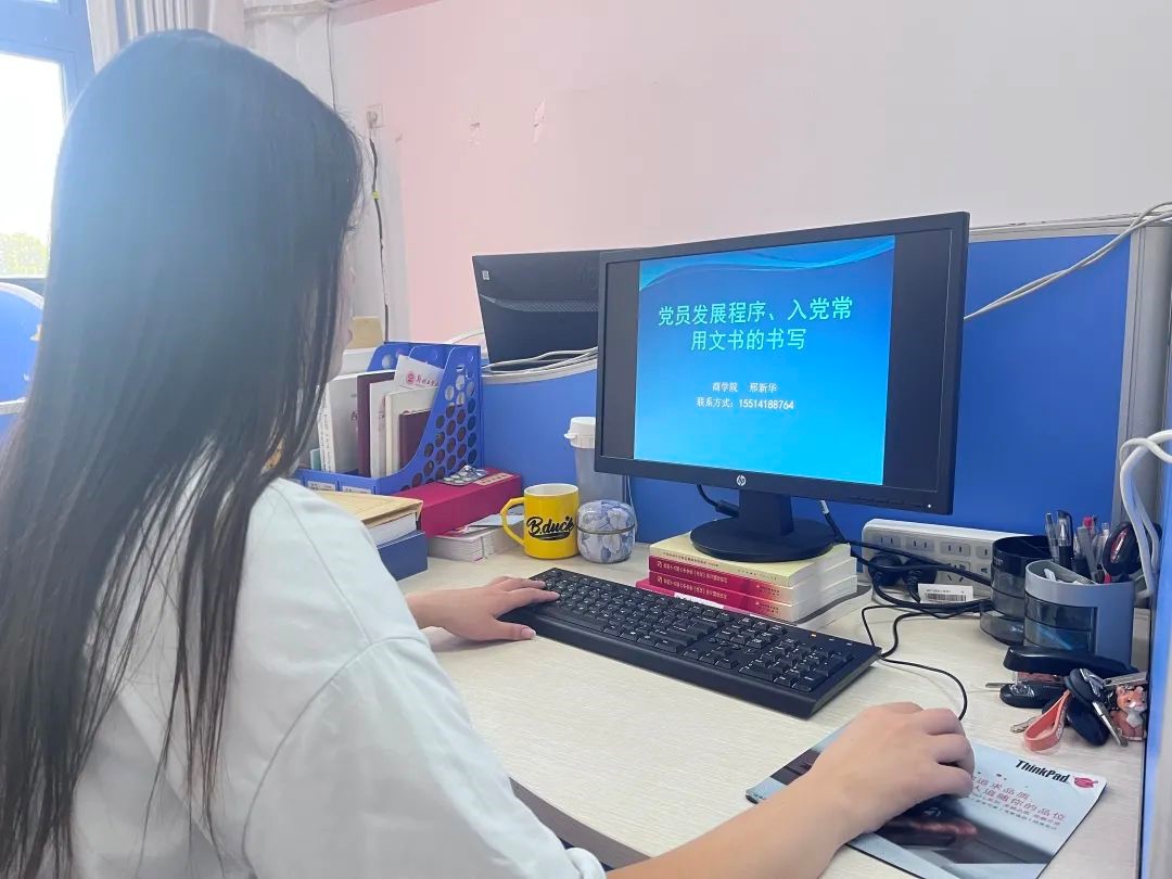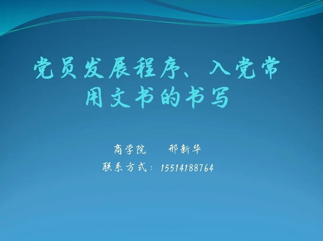 接着,邢老师将发展党员工作细节的五个步骤:申请入党环节、入党积极分子的确定和培养教育入党环节、发展对象确定和考察环节、预备党员的接收环节、预备党员的教育考察和转正环节做出详细说明。然后,又介绍了党员材料的填写和整理的相关事项内容。最后,她对新生党员入党提出了几点要求:一、牢固树立宗旨意识,加强党性修养锻炼;二、正确认识自己的位置,努力学会用心做人;三、始终牢记自己的职责,努力 学会认真做事。总之,以实际行动切实做社会主义道德的示范者、诚信风尚的引领者、公平正义的维护者,用实际行动彰显共产党人的人格力量。