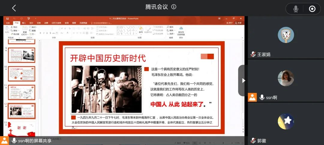随后,沈思宁同志带领同志们观看了一段视频,一起重温了以毛泽东同志为首的老一辈共产党人那段为中国人民谋幸福、为中华民族谋复兴的光荣岁月,感受中国共产党人的初心和使命,以及对党忠诚、不怕牺牲的坚定理想信念。