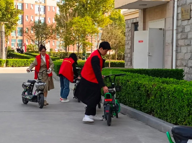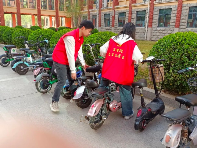 活动过程中,志愿者们不辞辛劳,齐心协力将非机动车辆停放到指定区域,摆放整齐,在志愿者们的共同努力下,有效地改善了校园非机动车辆乱停乱放和占用道路的现象。志愿者们用实际行动向师生们宣传文明骑行,文明停车的理念,引导师生将非机动车辆摆放到划定的停放区域,进一步加强了同学们文明规范停放车辆的意识,营造了安全、有序、和谐的校园环境。