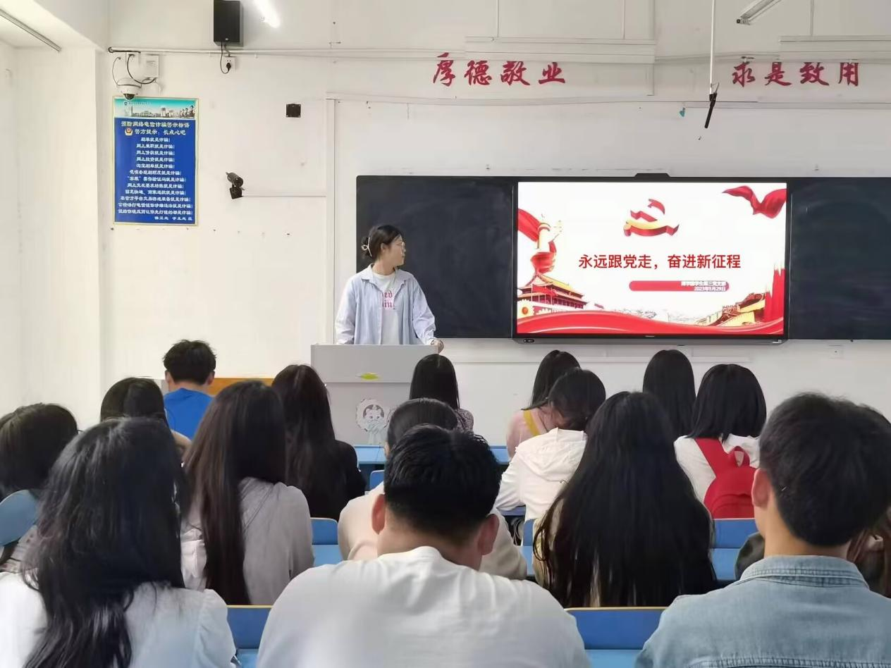 为深入学习贯彻习近平新时代中国特色社会主义思想主题教育,全面贯彻落实党的二十大精神,进一步提高同志们的党性修养与责任感,yl7703永利集团官网员工第三党支部于5月29日中午12:10分在文华三-103教室组织开展“永远跟党走,奋进新征程”主题教育专题党课。此次会议由支部书记童昌燕同志主持,yl7703永利集团官网员工第三党支部全体成员参加。