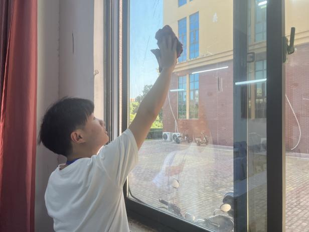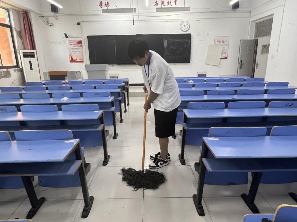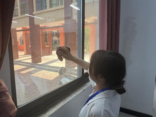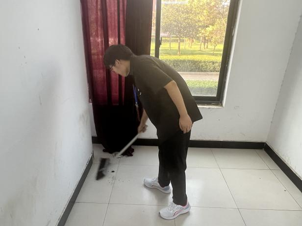 在打扫过程中,同志们分工明确,各司其职,手持拖把、抹布认认真真的开展打扫工作,不放过一丝角落里的灰尘,使每一间教室都变得干净整洁。他们不仅高质量高效率地完成了本次打扫工作,而且表现出员工党员用实际行动传承党员优秀品质的决心和信心。