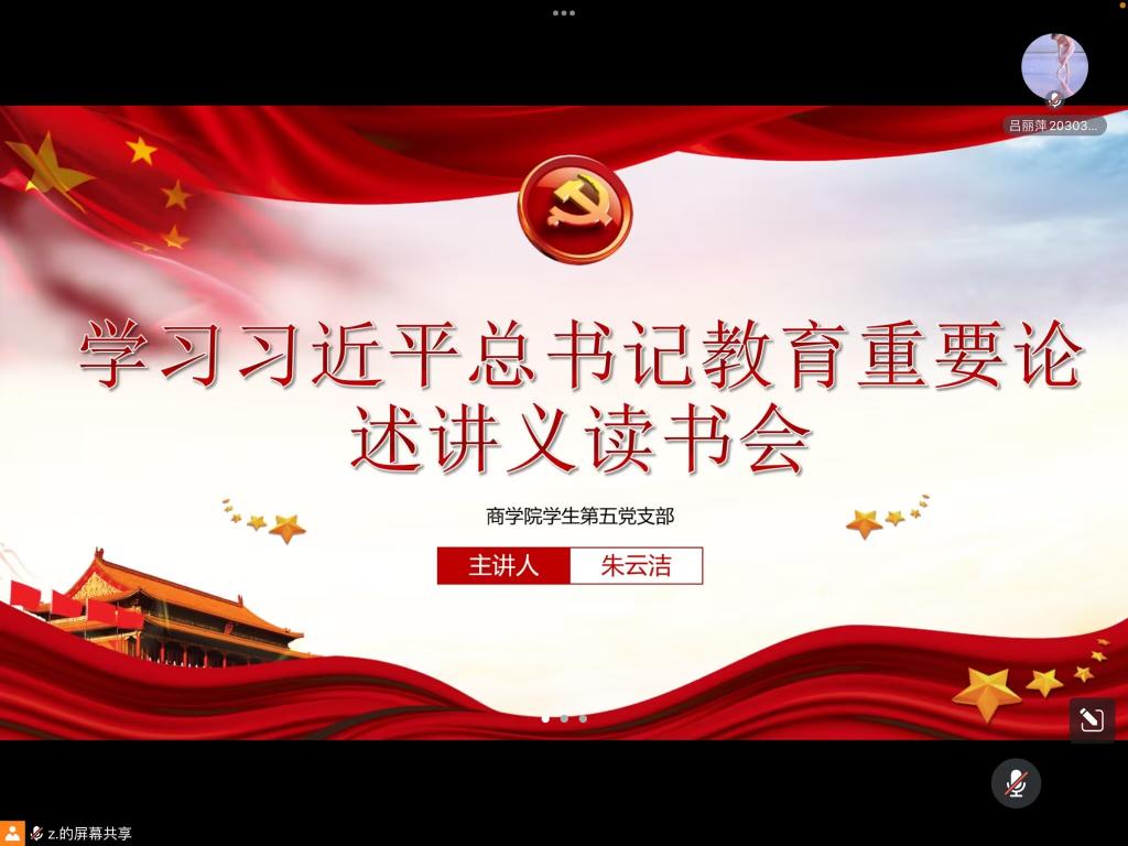 为深入学习贯彻习近平总书记关于教育工作的重要论述,提高员工党员同志的思想认识和工作水平,yl7703永利集团官网员工第五党支部于7月16日通过线上会议的形式召开了学习习近平总书记教育重要论述讲义读书会。本次读书会由员工第五党支部组织委员朱云洁同志主持,员工第五党支部全体党员,积极分子参加。
