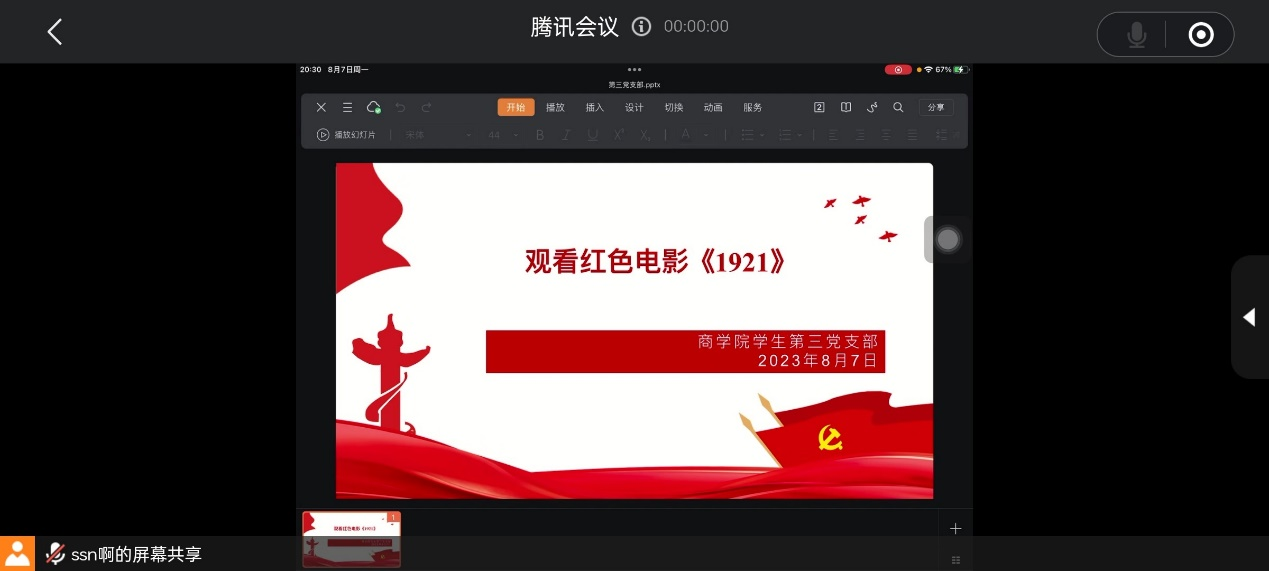 为深入学习贯彻习近平新时代中国特色社会主义思想,进一步增强党员同志们不忘初心、实干担当、奋发有为的自觉性、主动性和创造性。yl7703永利集团官网员工第三党支部于8月7日晚上8:30在腾讯会议上组织开展学习贯彻习近平新时代中国特色社会主义思想主题教育红色观影活动。此次活动由组织委员沈思宁同志主持,yl7703永利集团官网员工第三党支部全体成员参加。