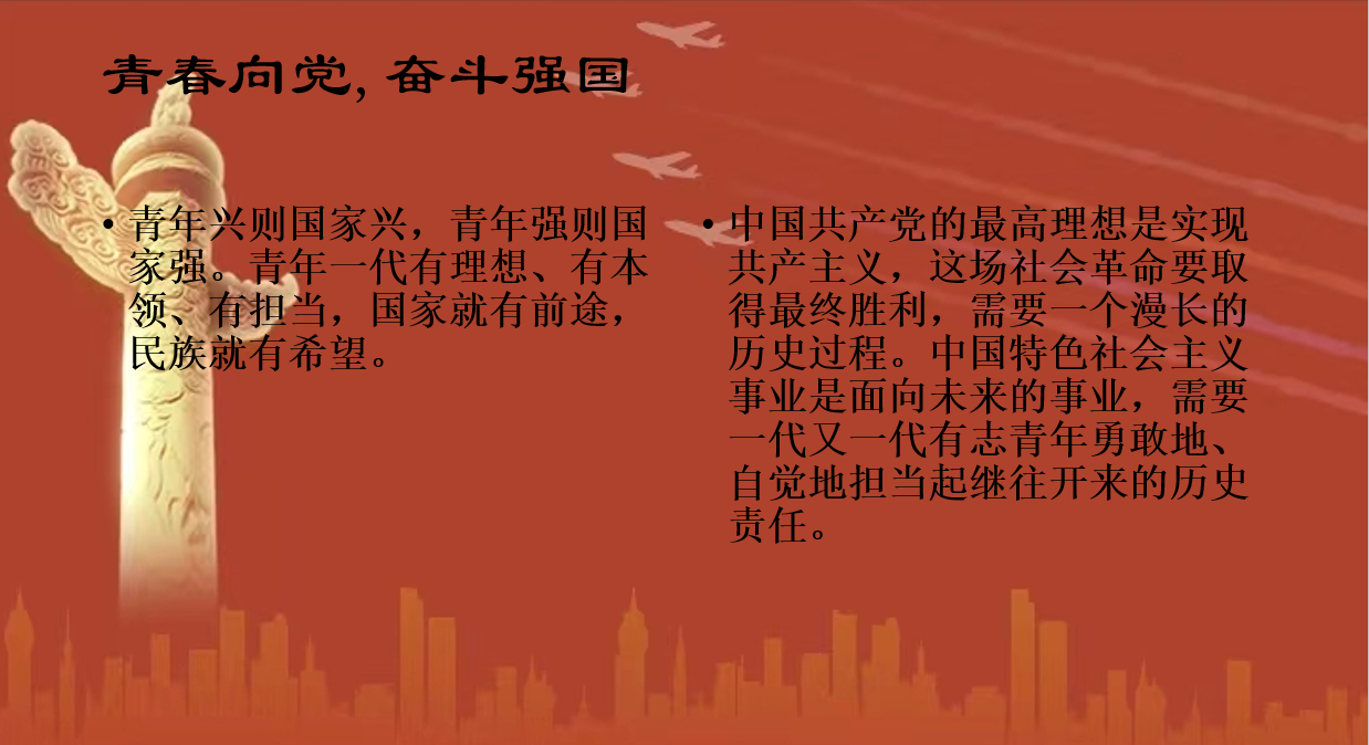 随后,陈道坤同志做出感想,他讲道:“作为新时代青年人,我们应当坚守初心,坚定信念,勇于担当责任和使命,不负青春、不负韶华、将个人青春融入党和人民事业,争做祖国伟大事业的参与者、建设者以及中华民族伟大复兴的先锋力量。”