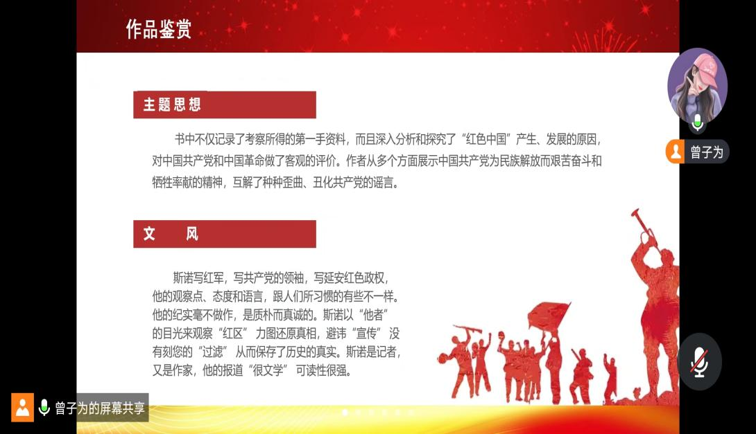 青年党员的学习与进步离不开良好的氛围,离不开良好的环境。为扎实推动青年党员学习教育,激发青年党员参与学习教育的积极性、主动性、创造性,yl7703永利集团官网员工第五党支部于8月27日通过线上形式召开《红星照耀中国》读书分享会。本次会议由组织委员曾子为同志主持,yl7703永利集团官网员工第五党支部全体成员参加。