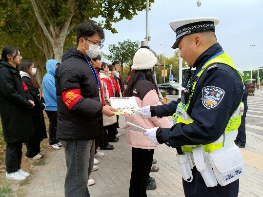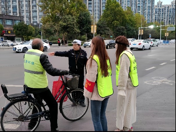 活动伊始,由值班交警以及宣传委员为同志们讲解交通“五个意识”等基础相关知识及注意事项,并强调:交通管理的目的,是为了引导广大市民自觉树立起交通安全意识,大家在工作中要以引导为主,在和谐的氛围中,与市民共同营造安全交通环境。接着,同志们身穿红色志愿马甲,井然有序地到达指定的交叉路口,积极投入到服务活动中。