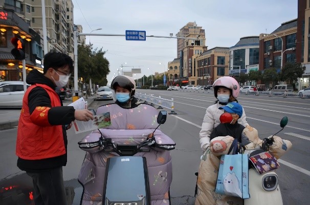 活动过程中,同志们发放交通安全知识宣传页,对行人闯红灯、逆向行驶等违章行为进行及时拦截和劝阻。此外,同志们协助交警维持交通秩序,对未自觉规范佩戴安全头盔的电动车驾乘人员进行耐心劝导和讲解,深入剖析此类交通违法行为存在的安全隐患,帮助公司附近居民树立正确的交通安全意识。