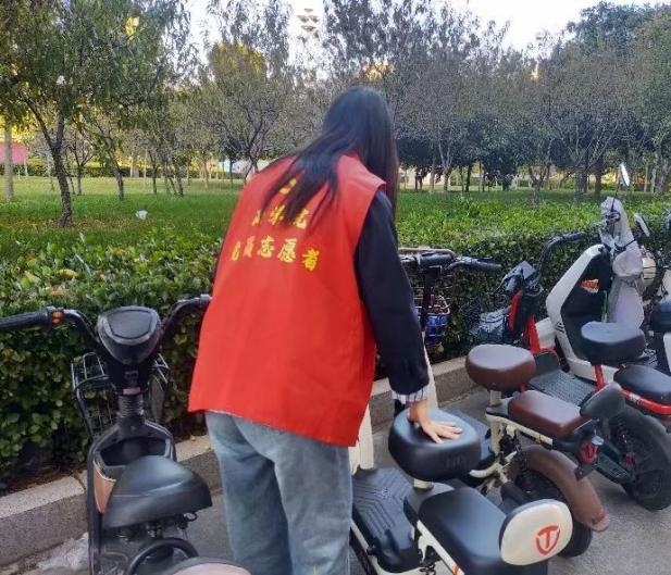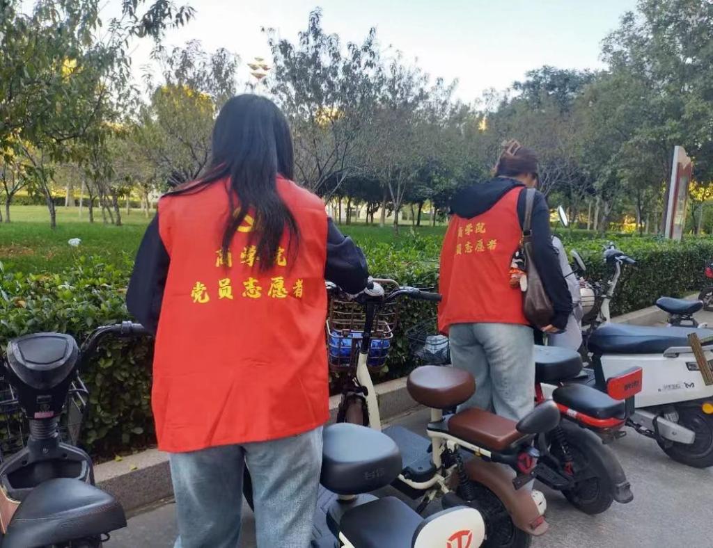 活动伊始,积极分子统一身穿红色志愿马甲,按时到达指定服务岗位,在负责人的安排下,他们以饱满的热情投入到社会实践活动中。活动过程中他们将乱停乱放的车辆摆放整齐,引导同学们有序摆放自己的车辆,同时还向同学们宣传遵守交通、文明停放车辆的思想。在积极分子的努力下,有效地改善了校园非机动车辆乱停乱放和占用道路的现象,井然有序的车辆成了秋日里一道亮丽的风景线。