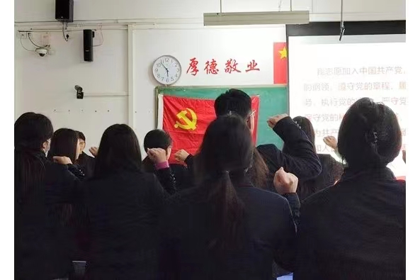 会议最后,赵昱同志提出:“同志们要积极向党组织靠拢,将党的理论贯彻到底,不仅要思想上入党,更要在行动上入党,以身作则,实事求是,为党和人民做出奉献。”接着,全体成员高擎右拳,庄严宣誓,坚定有力的誓言让在场的每一位同志接受了一次深刻的党性教育和灵魂洗礼。