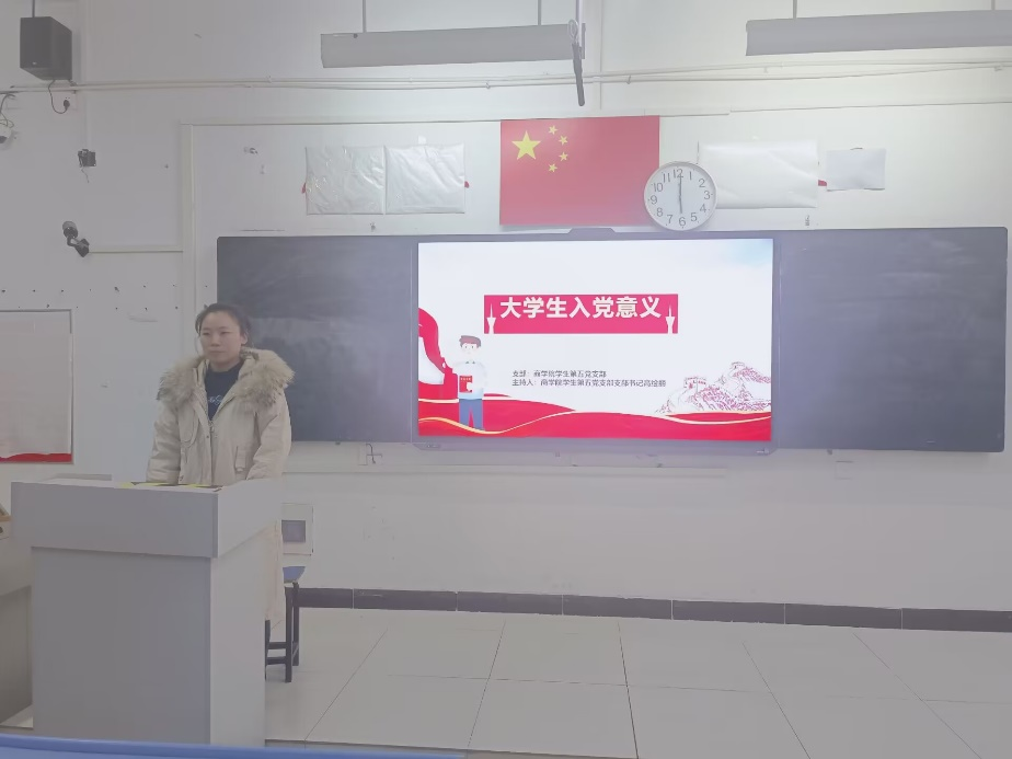 会议伊始,高绘丽同志向同学们讲述中国共产党的三大历史贡献以及党员的权利和义务等多项内容。接着,高绘丽同志指出:要做到真正从思想上入党,就需要不断端正自己的入党动机,克服懒散不作为思想,决不能“入党前拼命干,入党后松一半”。同时,要加强政治理论学习,不断提高自身理论水平和政治素养。