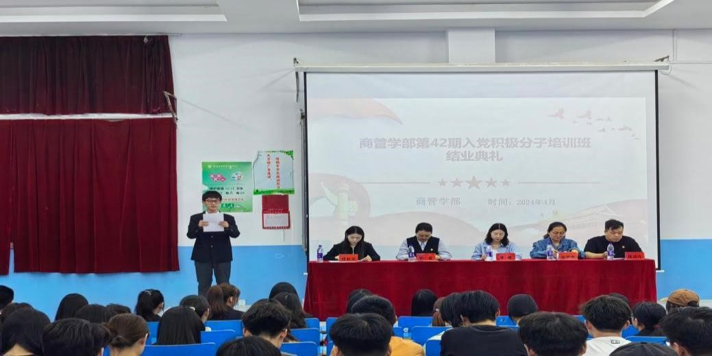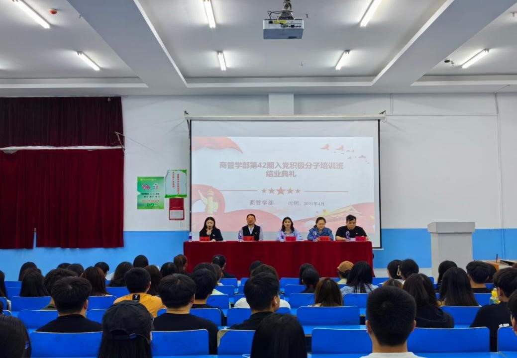 为加强对商管学部入党积极分子的培养教育与考察工作,检验其思想政治理论学习成果,提高理论水平、提升政治修养。学部党委于2024年3月下旬组织第42期入党积极分子进行党课培训,经过系统的理论学习和实践锻炼,分别于4月18日、4月19日,在西校区科技楼D1教室、东校区文华楼阶梯五教室举行结业典礼。