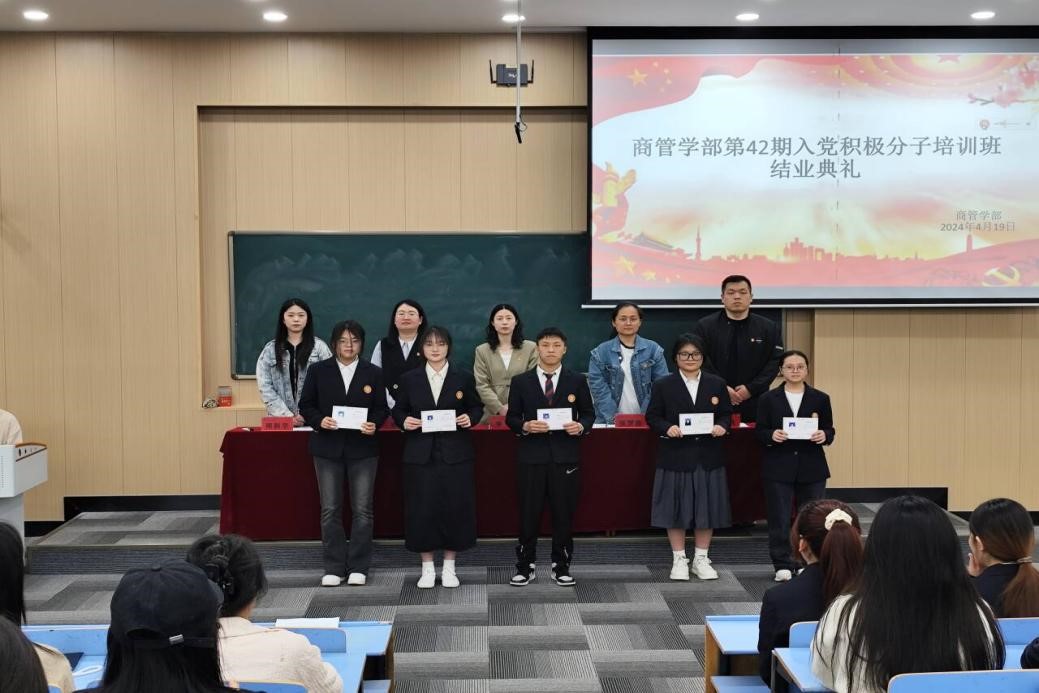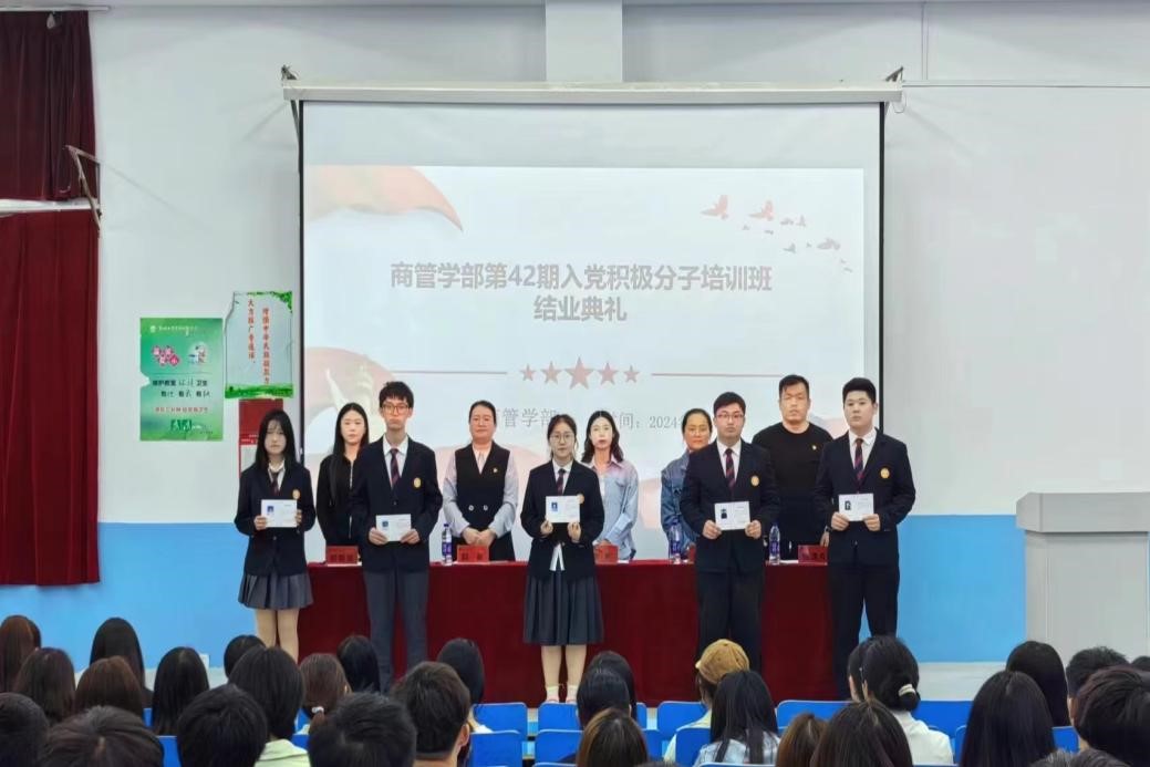 接着,由商管学部党委书记、学管副部长李婷,商管学部团委书记、组织员为42期入党积极分子学员代表颁发入党积极分子培训班结业证书,以表彰他们在培训班中的优异表现。