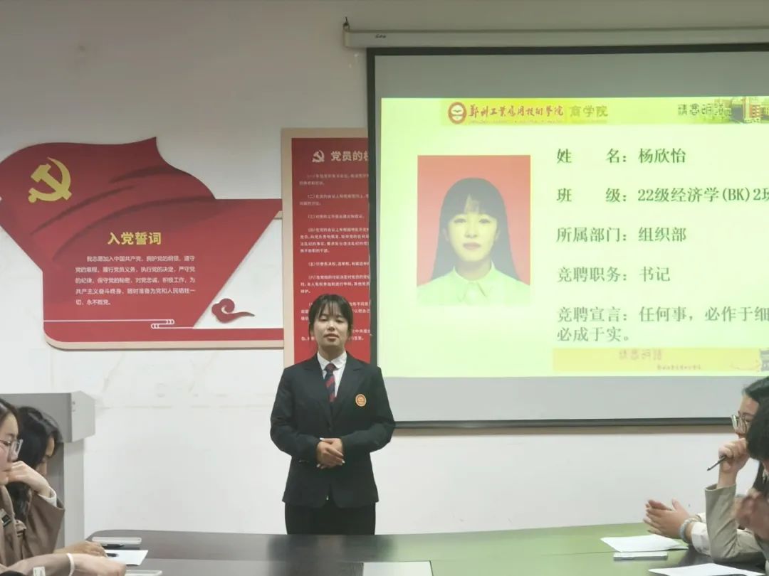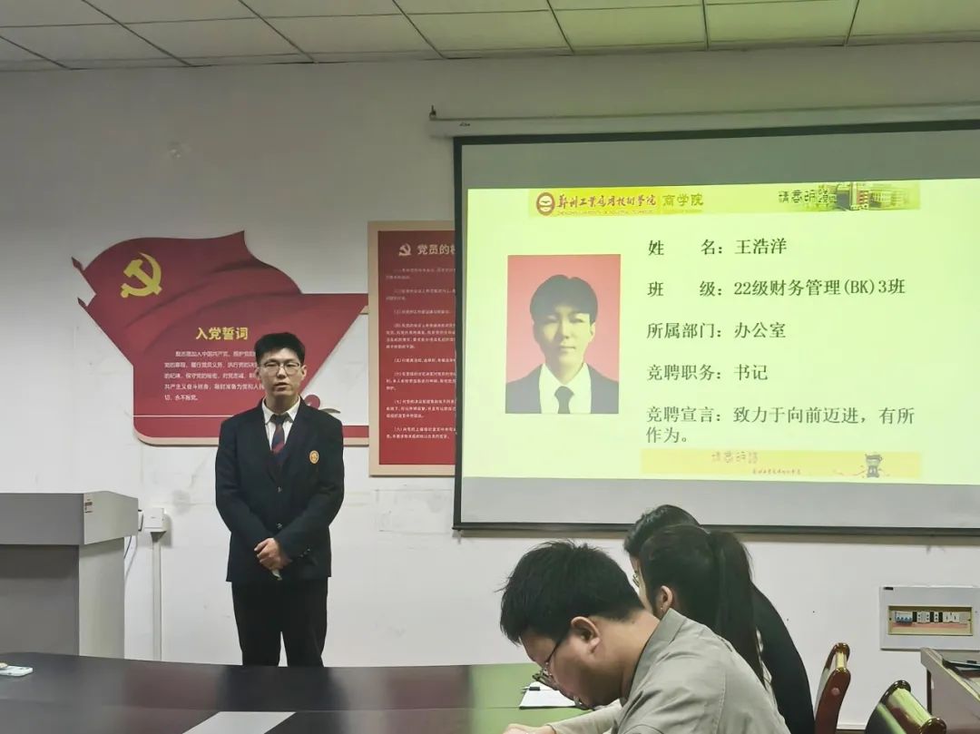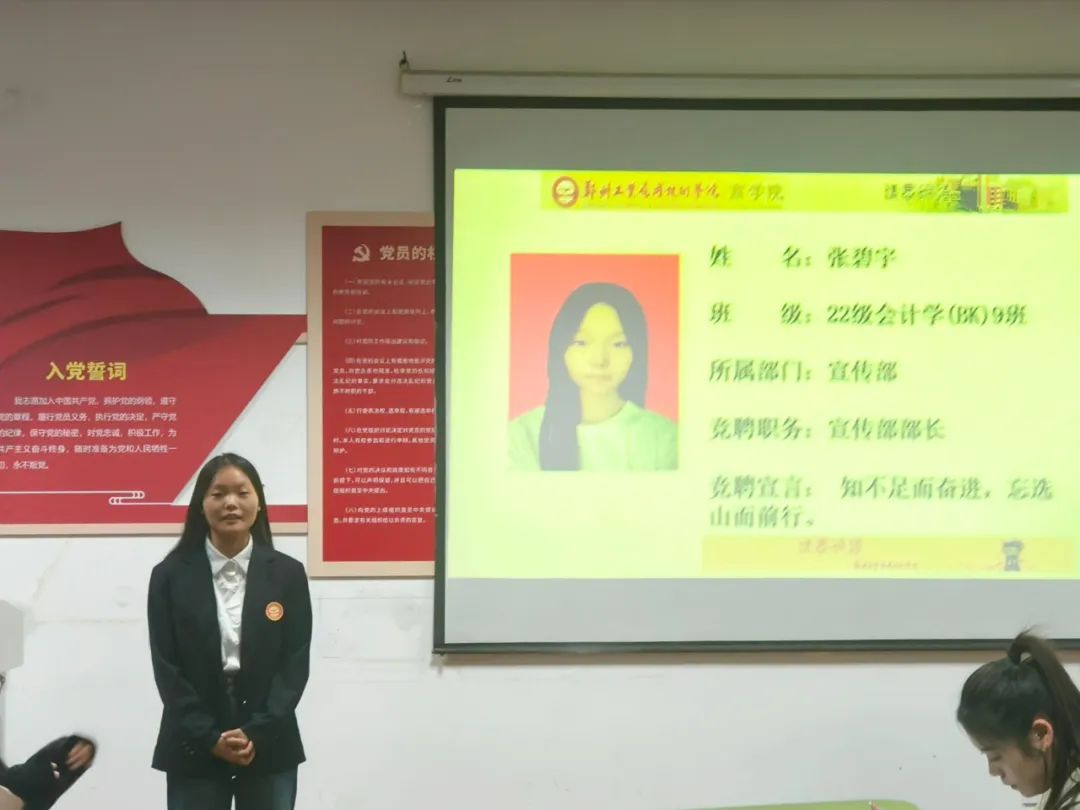 随后,竞选者依次上台,大家结合自己在工作中的经历和感悟进行了发言,阐述自身优势及对未来工作的展望。各位竞选者以沉着冷静的态度回答老师提出的问题,展现出了饱满的热情和坚定的决心。