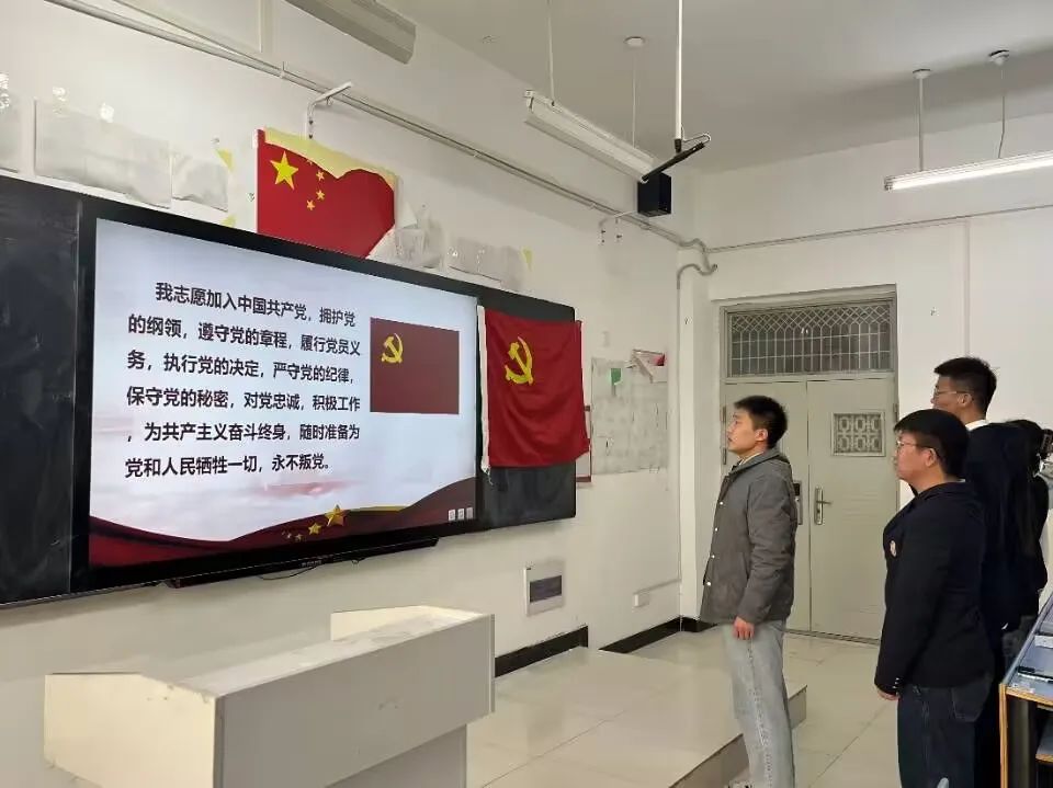 接着,全体正式党员和预备党员面对党旗庄严宣誓,所有同志的眼中都透露出了坚定的决心。