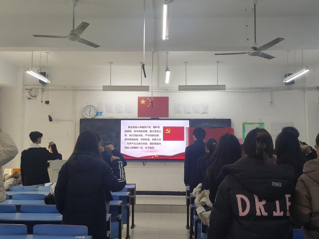 接着,全体正式党员和预备党员面对党旗庄严宣誓,所有同志的眼中都透露出了坚定的决心。