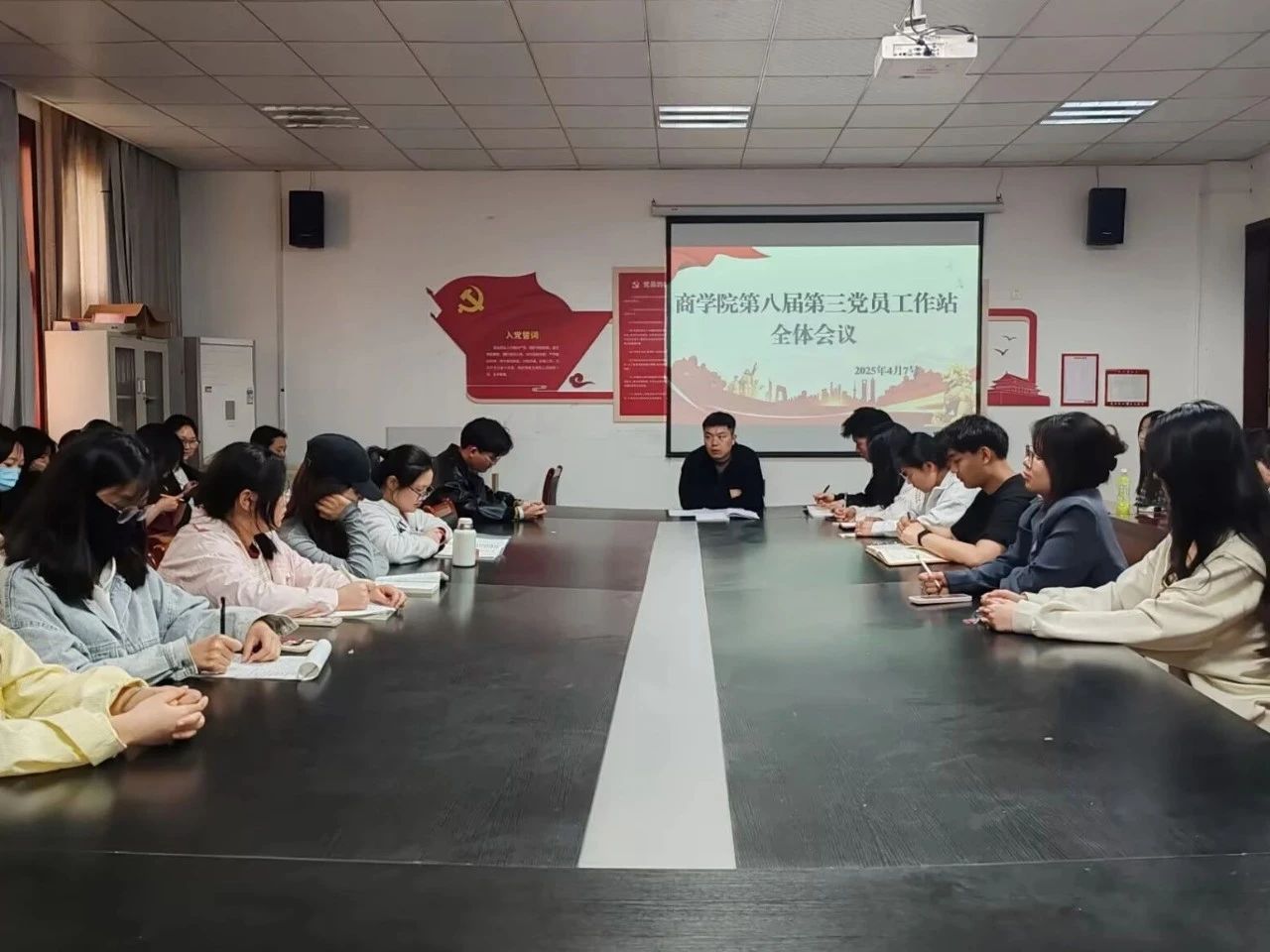 最后,工作站站长任世杰同志进一步补充,他倡导党员同志强化团队协作,在日常工作中及时交流、总结经验,以更积极的态度投身志愿服务。当深入员工宿舍了解晚归等情况时,秉持引导与帮助的原则,提升同学们自我管理的意识,携手共创整洁、有序的宿舍环境。