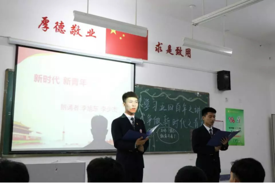 主题团日活动在庄严的团歌声中拉开序幕,团支部书记首先介绍了本次团日活动的主题和意义,并带领青年团员们共同学习了习近平总书记在纪念五四运动100周年上的重要讲话。紧接着,团支部委员及团员青年共同朗诵了《新时代 新青年》,全体团员们重温入团誓词。