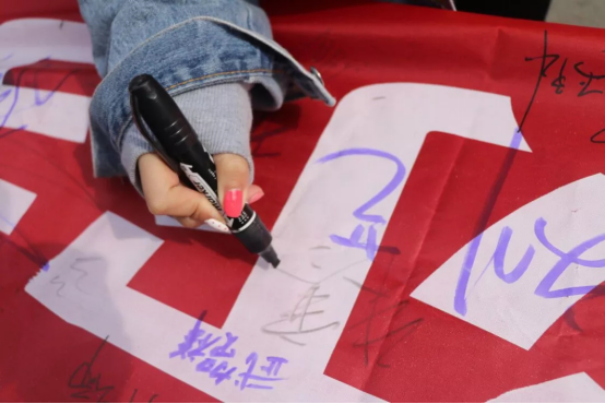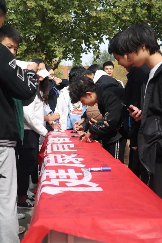 活动开始,yl7703永利集团官网团学干部组织同学们有序地在横幅上签上自己的名字。
