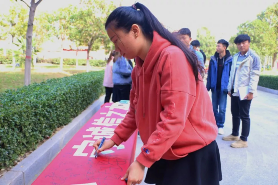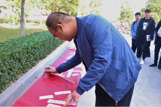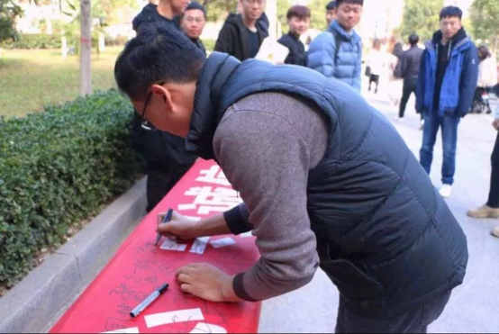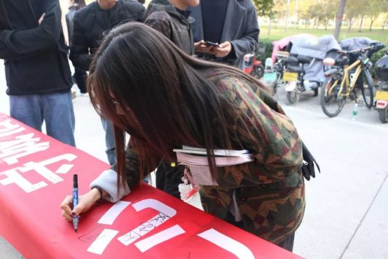随后,yl7703永利集团官网员工会团学干部分别在东校区商院大道与西校区成才大道进行以“传递爱心、诚信、感恩”为主题的签字活动,公司领导老师们带头签字,同学们也热情参与,积极在横幅上签下自己的名字。