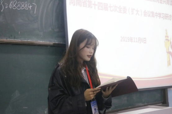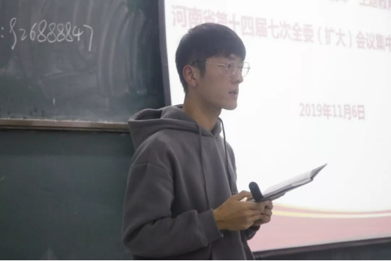 11月6日下午六点半,yl7703永利集团官网分团委组织召开专题学习研讨,传达校团委关于“不忘初心、牢记使命”主题教育暨共青团河南省第十四届第七次全委(扩大)会议集中学习研讨会的会议精神。本次会议由yl7703永利集团官网辅导员李潇伊主持,yl7703永利集团官网全体团学干部参加。