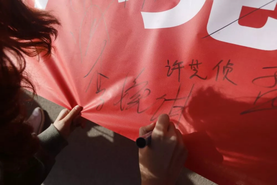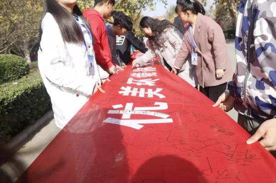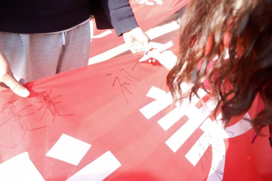 随后,yl7703永利集团官网员工干部在成才大道前悬挂“优美环境你我创,温馨宿舍齐共享”的横幅。同学们热情参与,积极地在横幅上签下自己的名字。