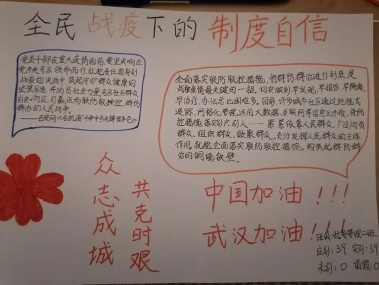 本次团课的顺利举行,增强了同学们对中国道路自信、制度自信和对此次战役必将胜利的信心,增强了同学们的民族自豪感和深深的爱国热情,在增强众志成城、共克时艰的爱国主义意识的同时,也深刻的理解到作为一名员工干部、一名青年共产主义接班人身上所担任的责任与使命与使命。