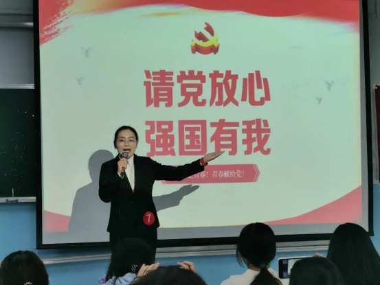 比赛中,选手们充分展现了自己的风采,经过激烈角逐,最终的排名为第一名,五号段一倩;第二名,七号任素娟;第三名,一号朱家增;第四名,三号朱新草;第五名,四号王统凯;第六名,八号乔晓文;第七名,二号李申奥;第八名,九号宋国帅;第九名,六号钱彦君。最后,由李营营老师点评。她讲到:“未来属于青年,要把展现中华民族伟大复兴作为己任,增强作为中国人的志气、骨气和底气。不负时代,不负韶华,请党放心,强国有我,是最好的表达,最好的承诺。”