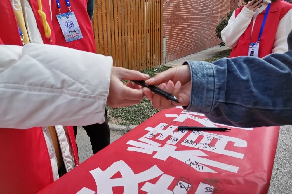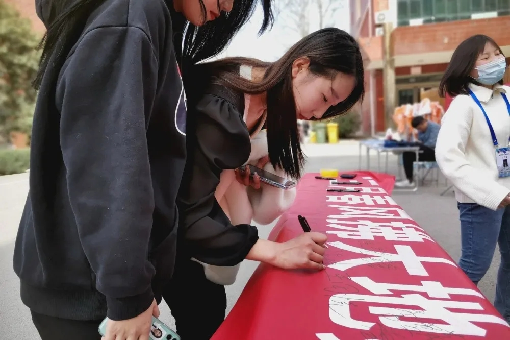 为迎接三月学习雷锋月,弘扬雷锋精神,加强公司学风作风建设,yl7703永利集团官网分别于2022年3月4日中午12点在东西校区举行“三月春风拂大地,雷锋精神入我心”签字活动和2022年3月5日上午10点在图书馆前举行雷锋月启动仪式。活动伊始,志愿者们在餐厅前拉起了横幅,热情邀请过往的同学和老师参与签字活动,活动现场气氛活跃。