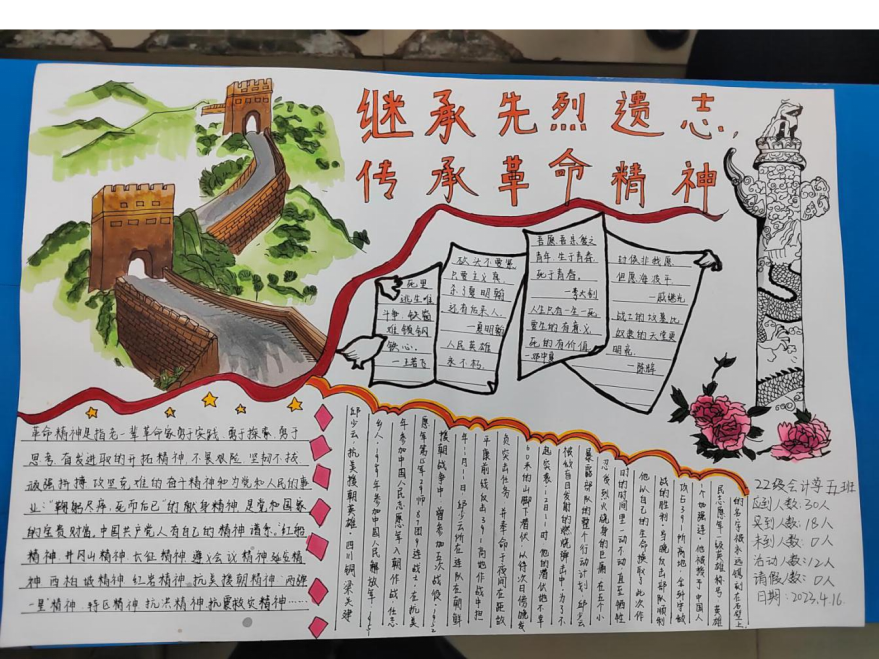22级会计学十班团支书说:“对革命先辈的最好纪念,就是传承他们的精神,坚定理想信念,并把他们为之奋斗、为之牺牲的伟大事业奋力推向前进。”中华民族伟大复兴的光明前景前所未有地展现在眼前,可以告慰革命先辈的是:他们信仰的理想正在实现,他们开创的事业正在继续,他们书写的历史必将由我们继续书写下去。当代老员工们一定要珍惜这来之不易的学习机会,好好学习,学习到更多的知识,将来以自己的实际行动更好地报效我们伟大的祖国。