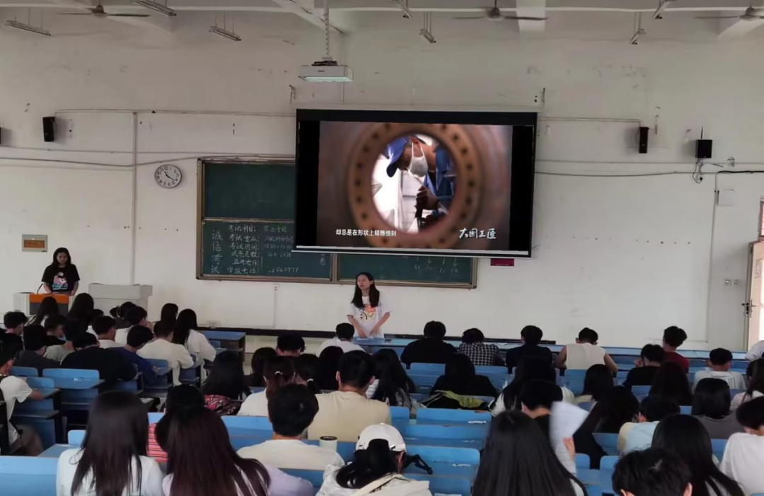 首先辅导员老师们播放了《大国工匠》的宣传片,其中讲述了高凤林等八位不同岗位的劳动者,靠着自己过硬的技术,用灵巧的双手,创造了一个又一个的奇迹,在自己平凡的岗位上追求着职业技能的完美,最终脱颖而出,为民谋福,贡献社会的故事。