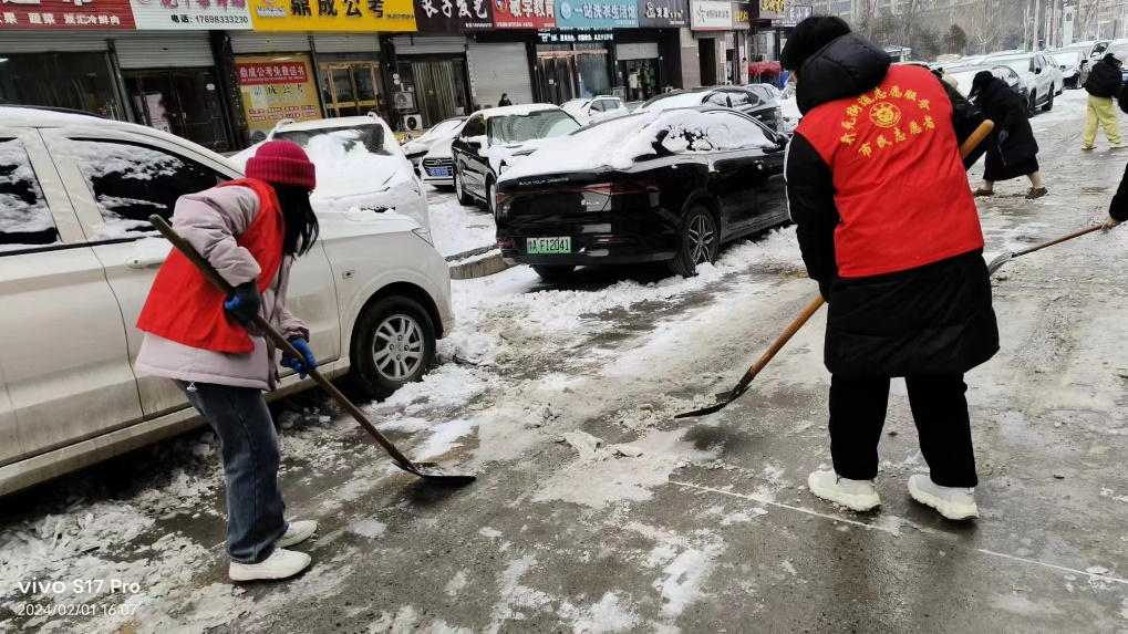 随着大雪的悄然而至,整个城市都被洁白无瑕的雪花覆盖,形成了一幅美丽的冬日画卷。然而,美丽的雪景背后,也给市民的出行带来了诸多不便。为了保障市民的出行安全,一群充满公益之心的商院学子,挺身而出,拿起铲雪工具,投入到铲雪除冰的行动中。