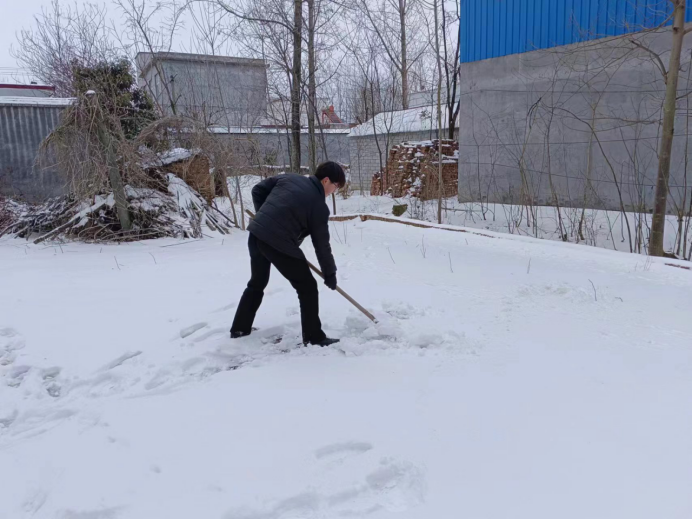 志愿者们手拿铁锹和扫帚,分组行动,齐心协力配合当地社区志愿者们共同清理道路上的积雪。在志愿者的带动下,群众们也积极加入积雪清除工作中,有的居民主动为志愿者送出热饮,让志愿者在寒冷的天气中感受到邻里的温暖。