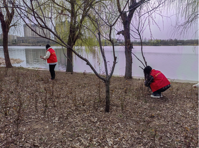 活动中,志愿者准备好卫生打扫工具,合理分工,有条不紊地开始工作清理轩辕湖周边遗留的垃圾,无论是散落在地面的的烟头、纸屑还是包装袋等,都被志愿者清理干净,装进垃圾袋中,在做到了不遗漏一片垃圾,不污染一片土地的同时,也为周围的群众起到了示范作用。志愿者用自身实际行动继承和发扬了雷锋精神,践行生态保护的理念,实现了此次活动的期望。
