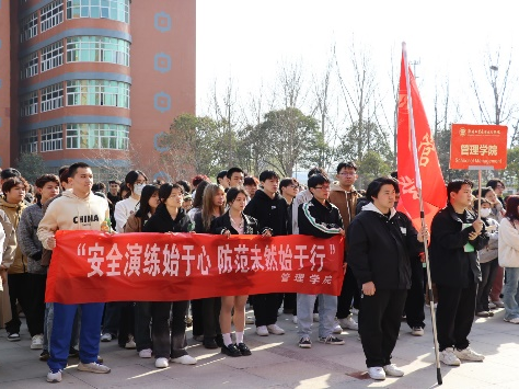 为加强校园消防安全建设,增强同学们的消防安全意识和面对突发危险事件的应变能力,引导同学们熟练掌握安全疏散的逃生方法,保障自身的生命和财产安全。商管学部本着“预防为主,安全第一”的原则,于2024年3月20日16时组织开展消防安全演练活动,商管学部党委书记、学管副部长李婷带领商管学部辅导员老师和师生代表参加。