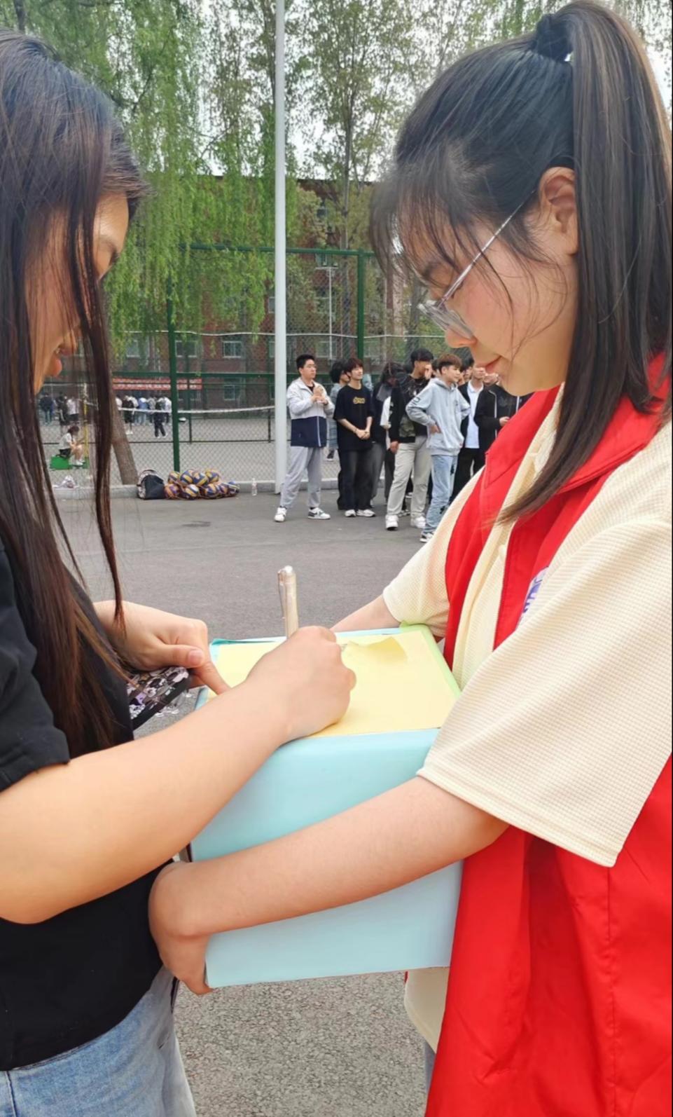 活动过程中,志愿者游走在在操场、宿舍、餐厅等地点收集同学们的各种情绪。同学们将将自己不敢表达的烦恼、情绪放入“情绪收集箱”,自由地表达自己的情感,释放内心的压力。