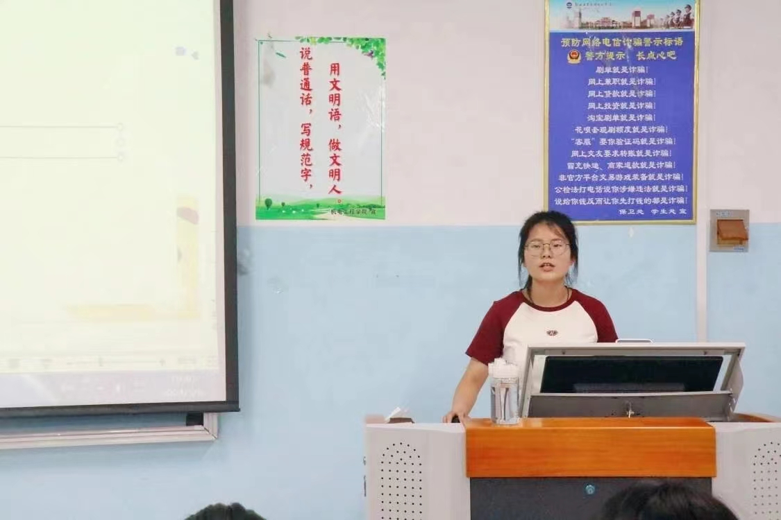 宣讲会上,任素娟同学和邬银婷同学结合⼊学以来的经历,分享⾃身学习经验,与同学们共同探讨如何解决⽇常学习中遇到的问题,提醒同学们在做到“德、智、体、美、劳”全⾯发展的同时,也要深怀感恩之⼼,积极思考⾃身的未来发展⽅向,提前做好个⼈规划,努⼒成为最好的⾃⼰,并⿎励同学们在今后的学习⽣活中,⾃强⾃⽴,发奋学习,⽤知识武装⾃⼰,将来⽤真情回报社会,⽤⾏动报效祖国,并带着⼀颗感恩的⼼,将爱⼼传递下去,尽⼒积极主动去帮助困难的⼈们。