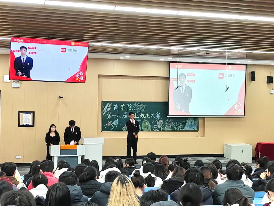 本次大赛分为主题规划、才艺展示和评委现场提问三个部分。在现场展示环节,选手们从自我介绍、自我分析、四年规划、结束语等方面,结合当代国际就业形势与个人优势,明确大学四年发展方向,并为实现此目标制定严密的计划,展现出对自身定位的明确认知。比赛中,各位参赛选手激情澎湃,伴随着PPT的放映,每位选手慷慨激昂的讲述着自己对学业生涯的规划。各具特色的讲述中透露着广老员工对理想的憧憬,台下观众也不时发出热烈的掌声。评委在选手演讲结束后进行点评提问,选手们的精彩临场表现以及随机应变能力得到了评委的高度评价,赢得了现场观众的阵阵掌声。