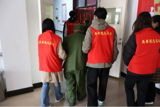 揭牌仪式圆满结束后,志愿者们迅速在新郑市光荣院内开展学雷锋志愿服务活动。活动现场,大家分工明确、行动高效,拿起扫帚仔细清扫地面的积尘,认真整理床铺,用抹布擦拭走廊栏杆。清扫完毕,志愿者们围坐在革命老兵身旁,怀着崇敬之情,与老兵亲切交流,听他们回忆起往昔岁月,在老兵的故事中感受着老一辈革命家的崇高精神。最后,志愿者们来到宣传栏前驻足观看革命事迹。大家在驻足观看中,深刻领悟到革命先辈们无私奉献、勇于担当的伟大精神,进一步坚定了传承红色基因、践行初心使命的信念。